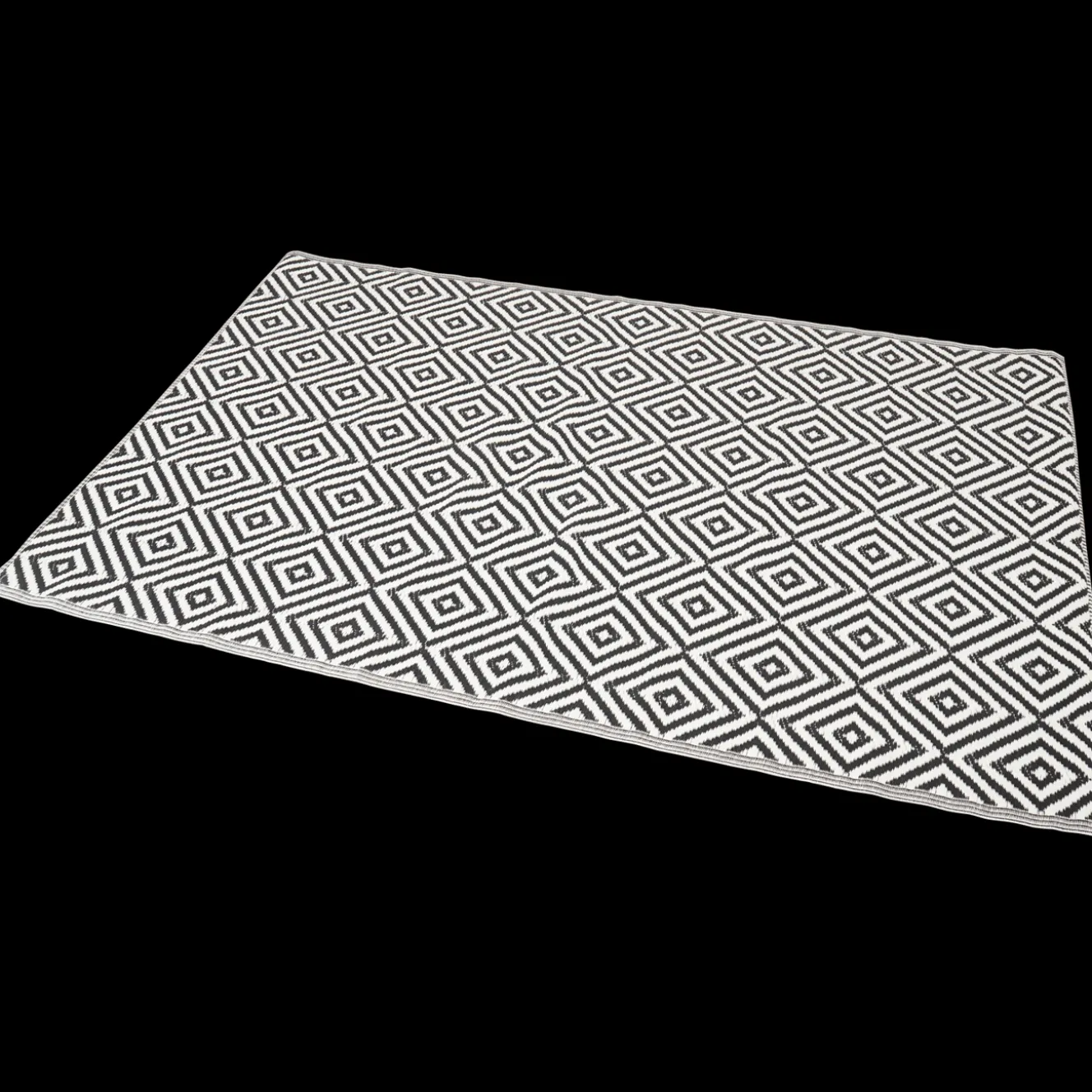 Modern vloerkleed dat je buiten kunt laten liggen. Leuk om de tuin of het balkon mee aan te kleden.