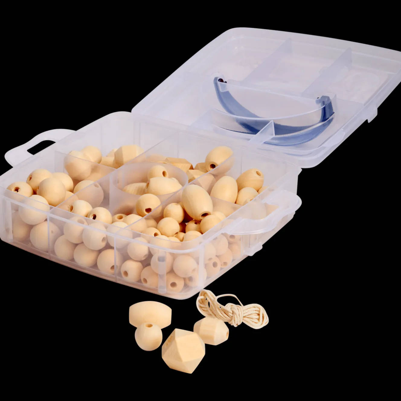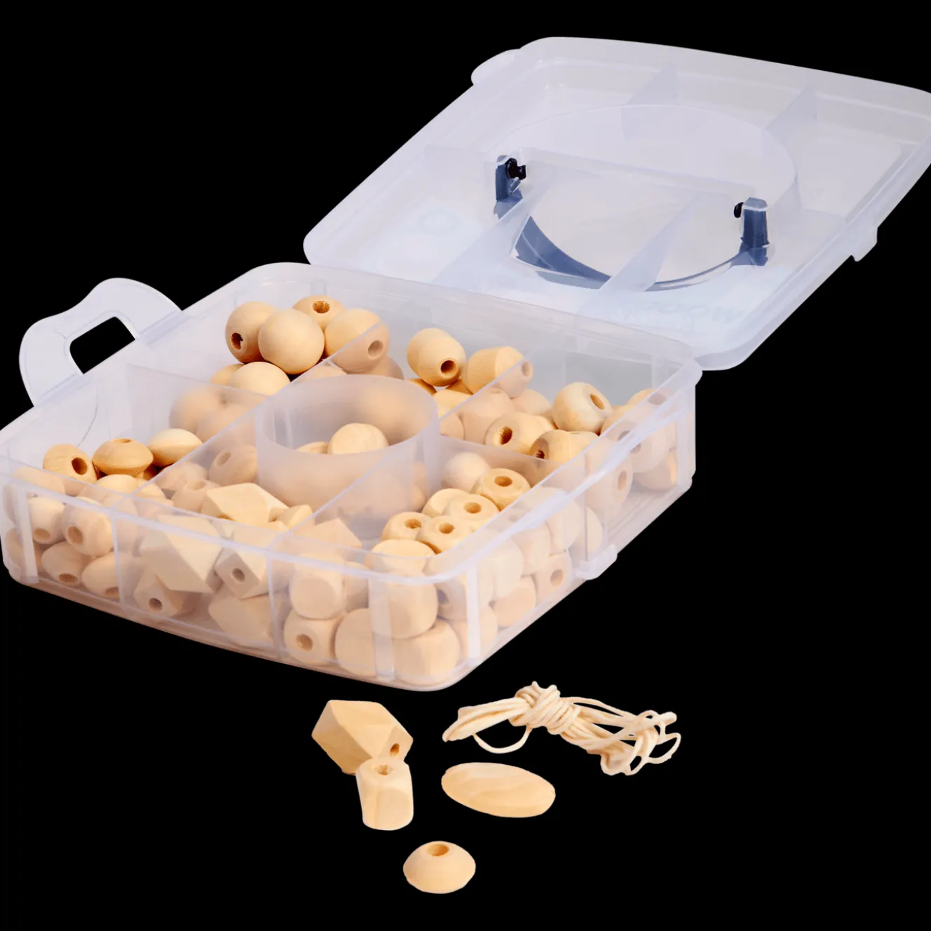 Met deze houten kralenset kun je écht van alles maken! Rijg armbandjes, maak een gave onderzetter, versier een spiegelrand of schilder de kralen in je favoriete kleuren. Alles wat je nodig hebt zit erbij: 1,5 meter touw en een handige doos om alles netjes te bewaren. Laat je creativiteit de vrije loop!