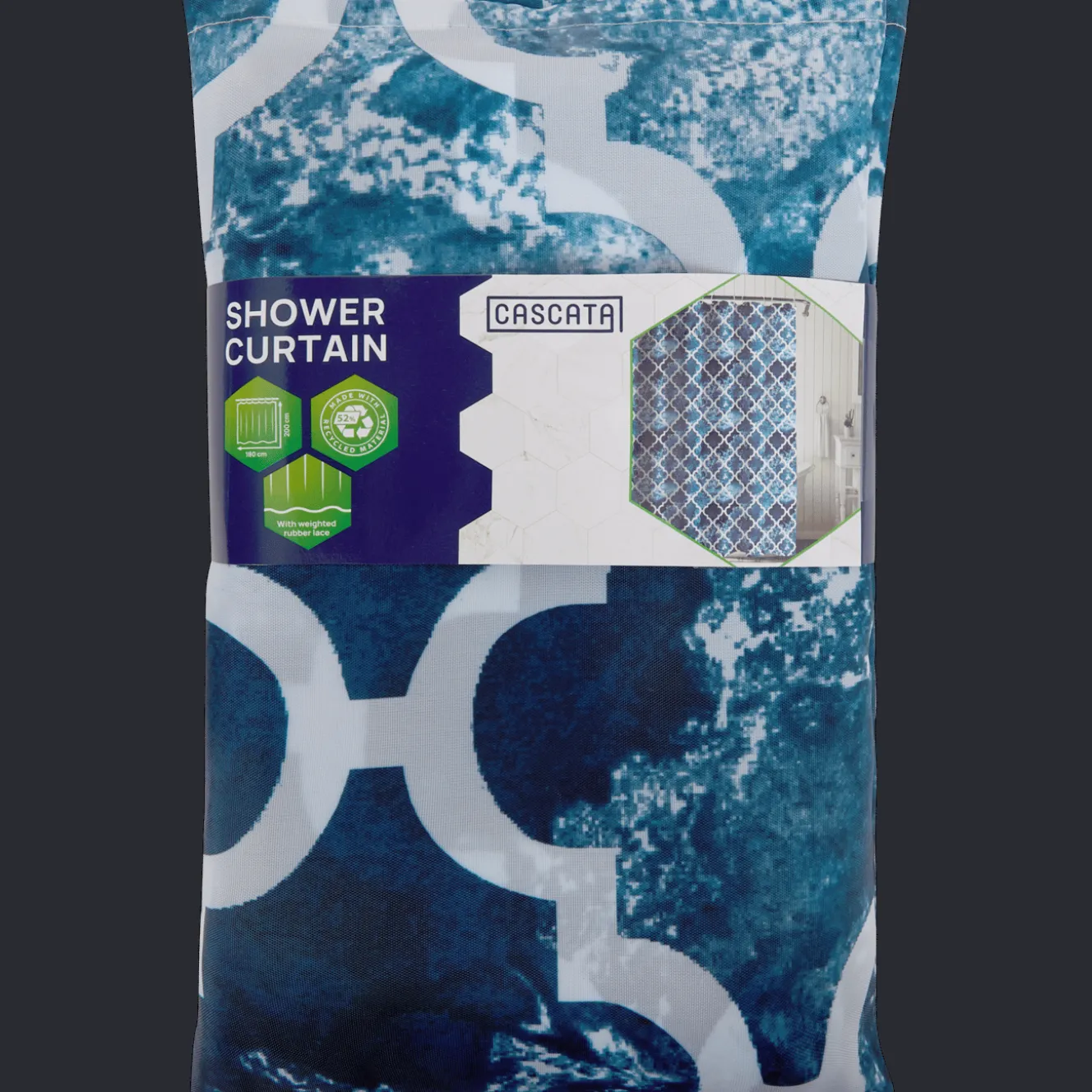 Dit stijlvolle douchegordijn houdt je badkamer droog tijdens het douchen.