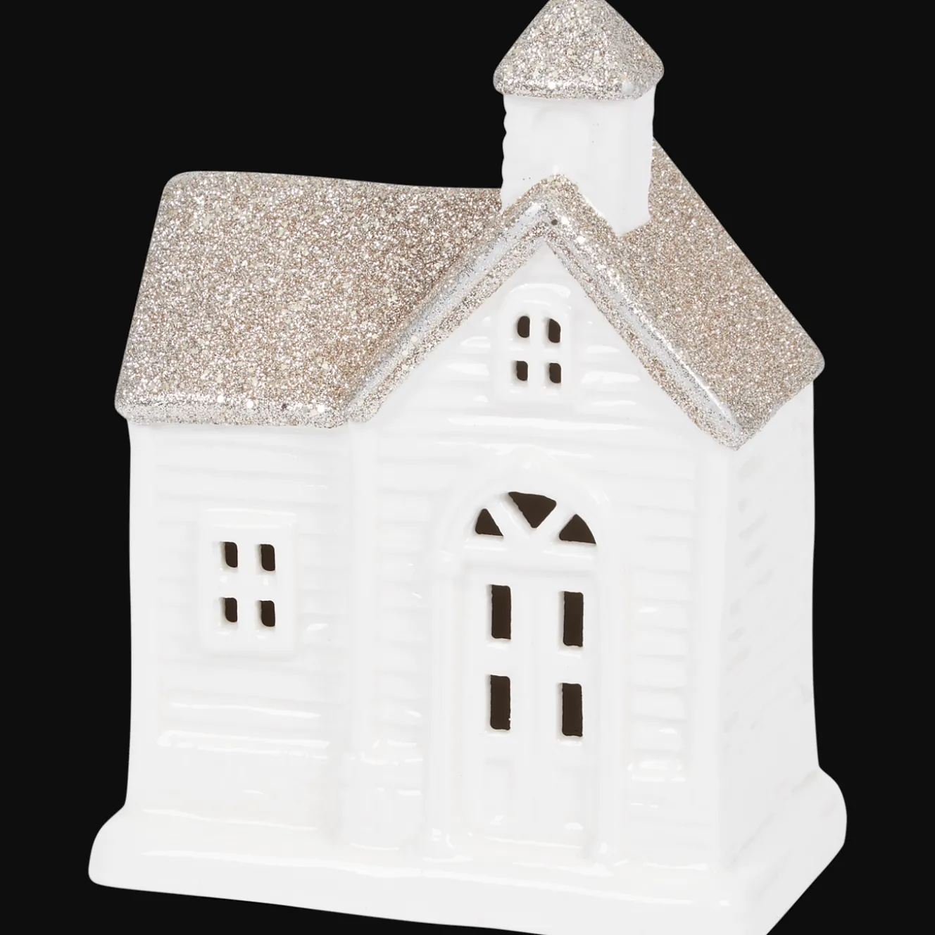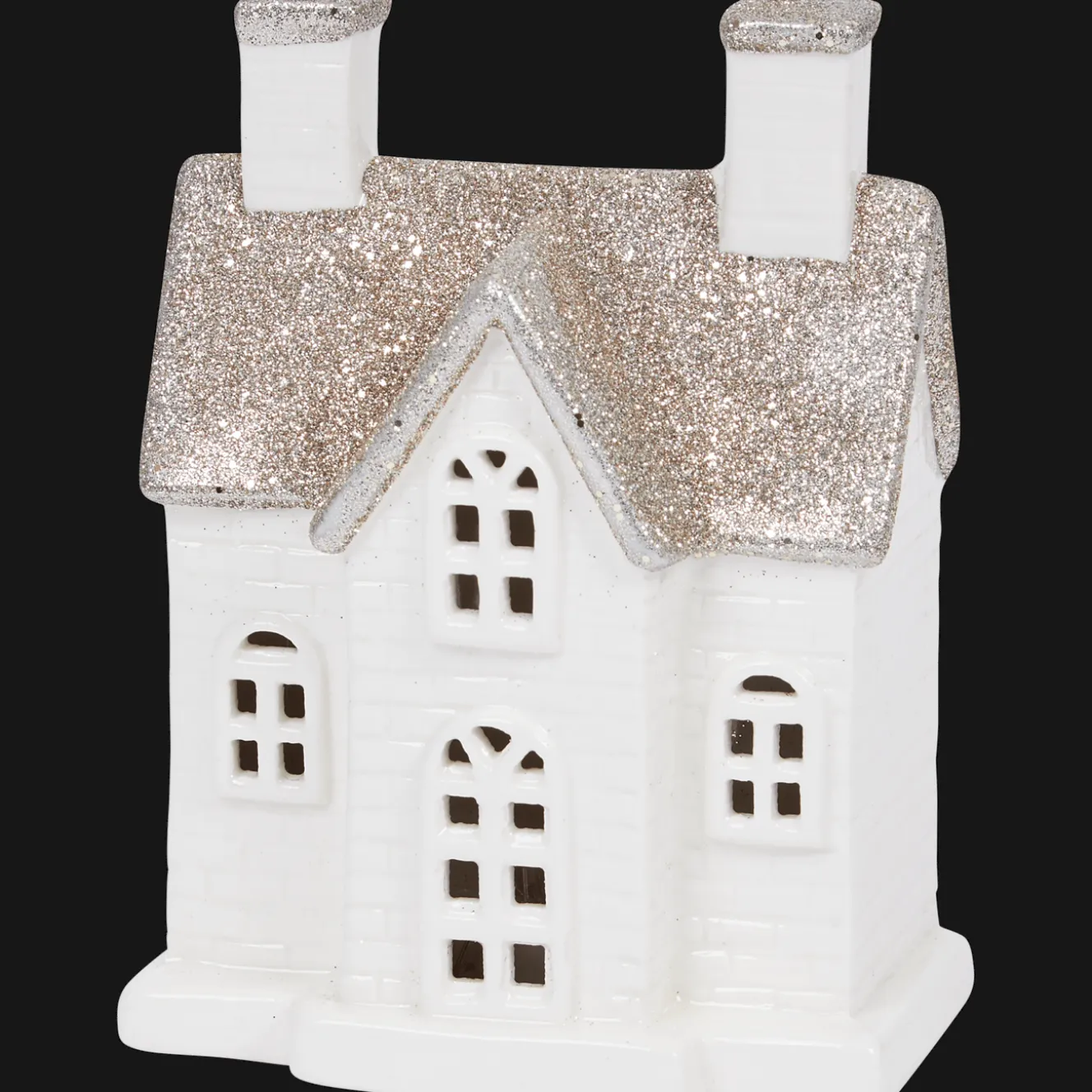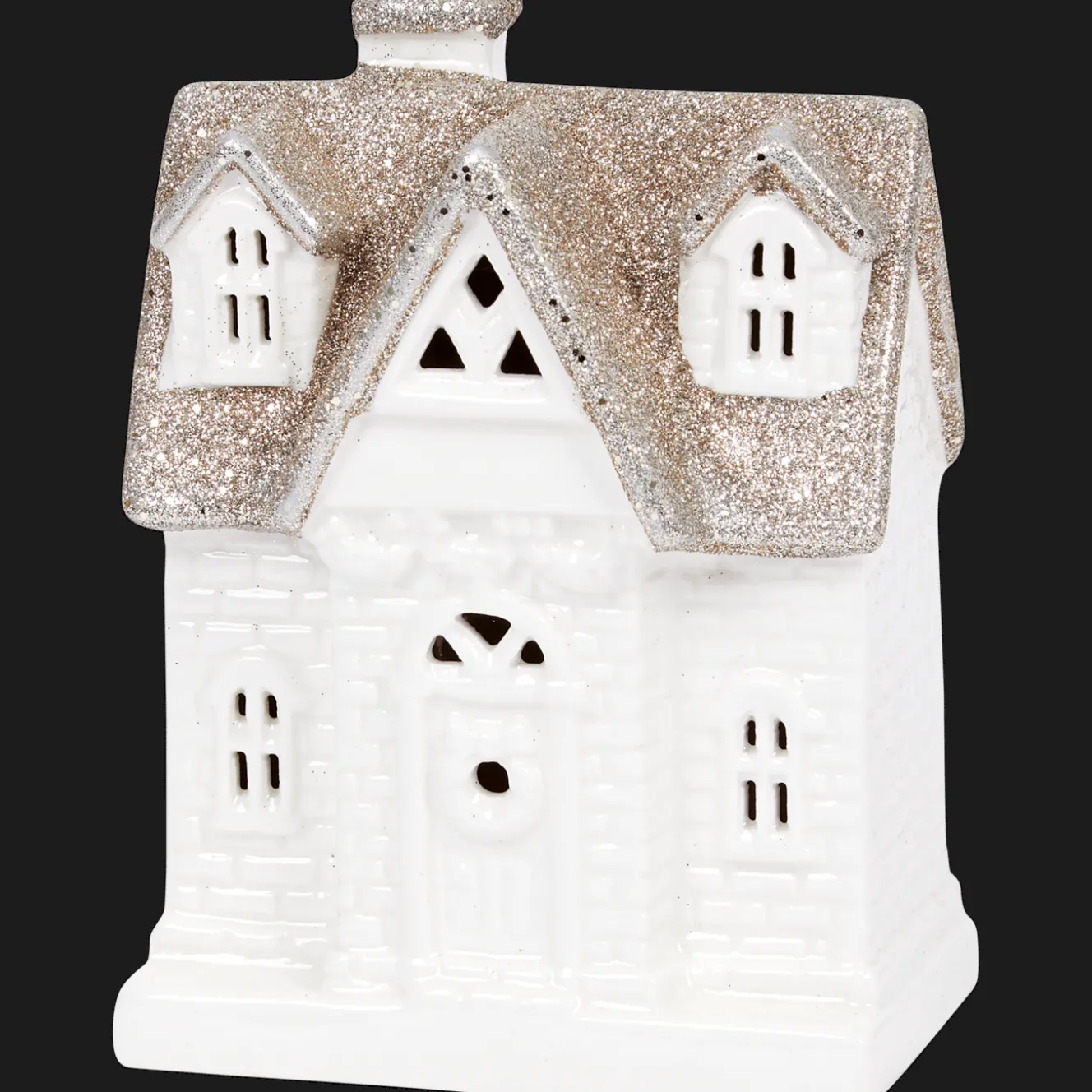 Decoratief huisje met een glitterdak. Leuk om je interieur mee te versieren tijdens de wintermaanden.