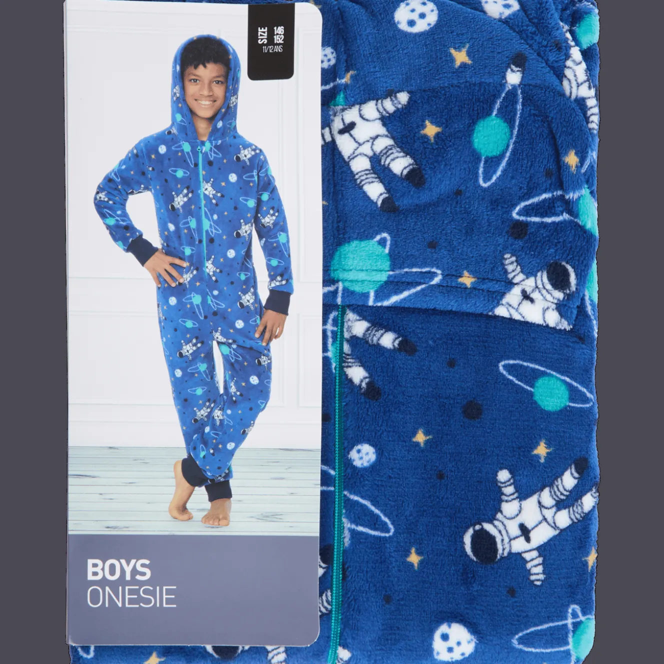 Stoere onesie om lekker mee op de bank te hangen of in te spelen. Ook leuk voor een slaapfeestje!