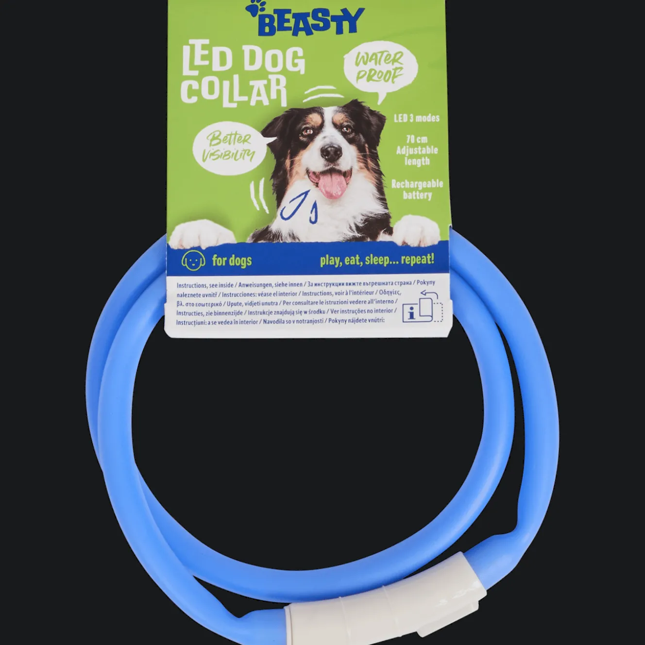 Met deze handige led-halsband is je hond goed zichtbaar in het donker. Ideaal voor een blokje om wanneer de zon al onder is.
