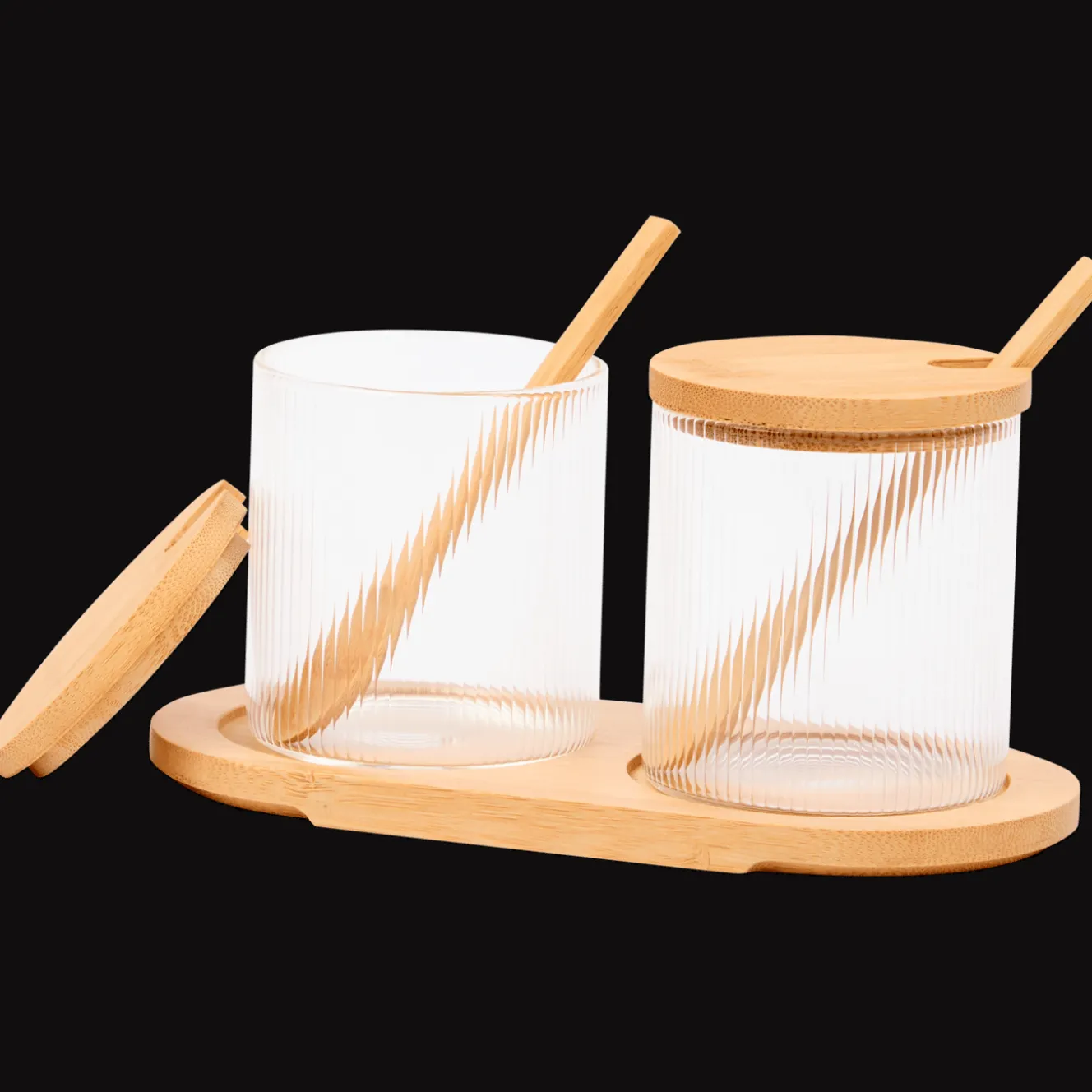 Met deze stijlvolle bamboe serveerset heb je suiker, kruiden of thee altijd binnen handbereik. Perfect voor een georganiseerde en natuurlijke uitstraling in de keuken!