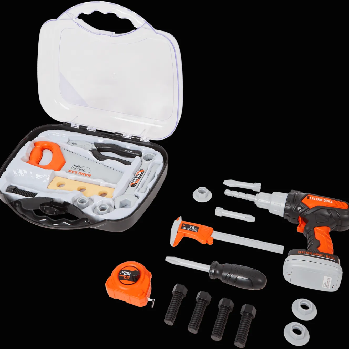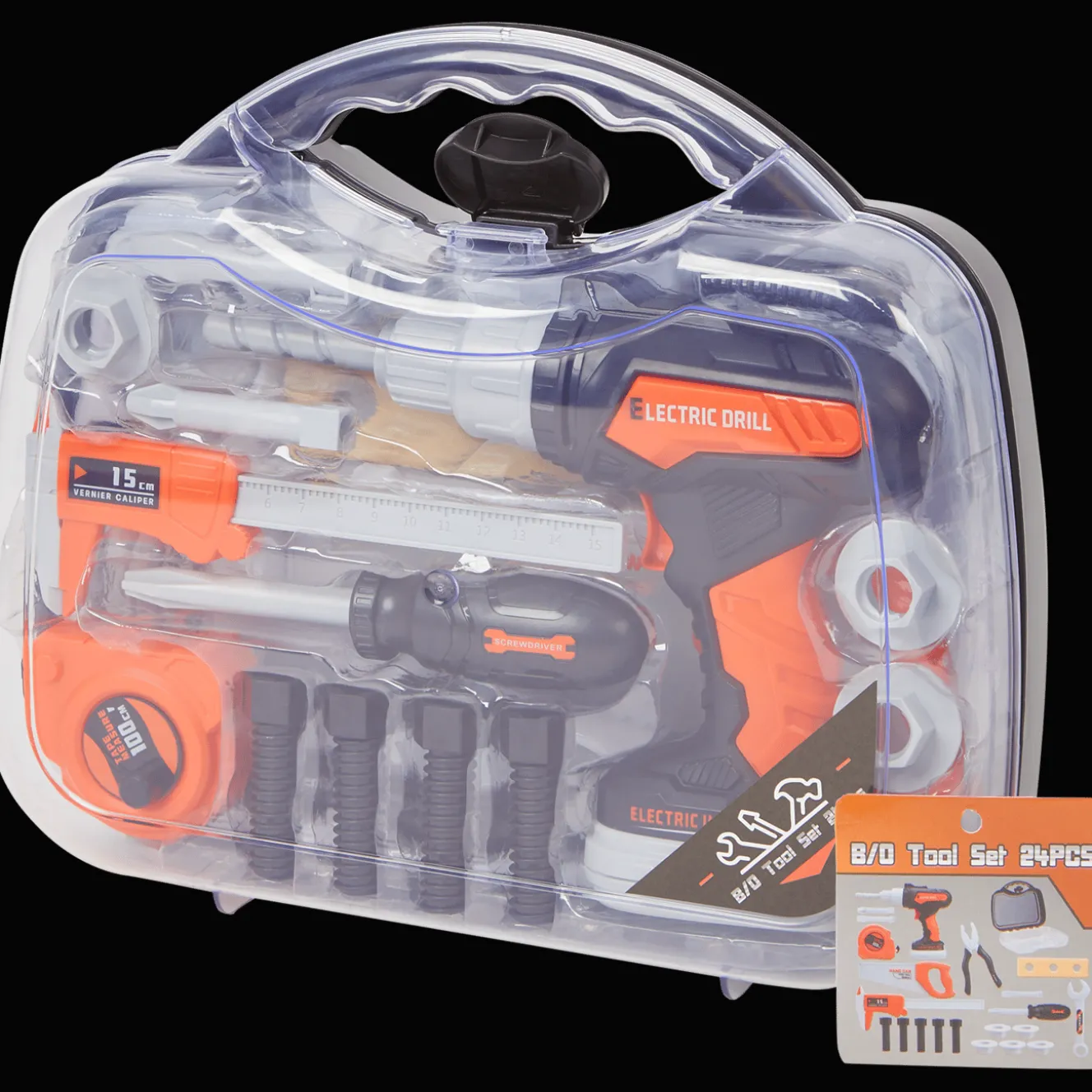 Help een handje mee met klussen met deze 24-delige speelgoed gereedschapsset.