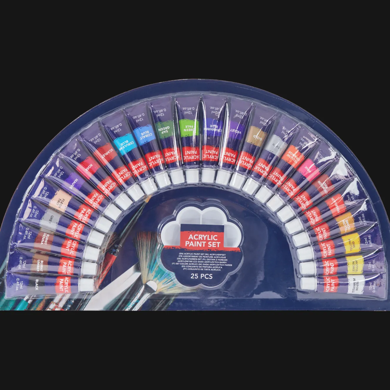 Luxe verfset met 24 verschillende kleuren verf en één schilderspalet.