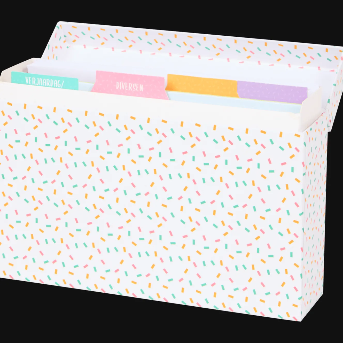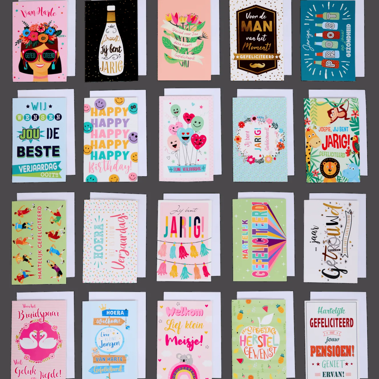 Met deze wenskaartenbox heb je altijd een passende wenskaart klaar met de leukste plaatjes en teksten.