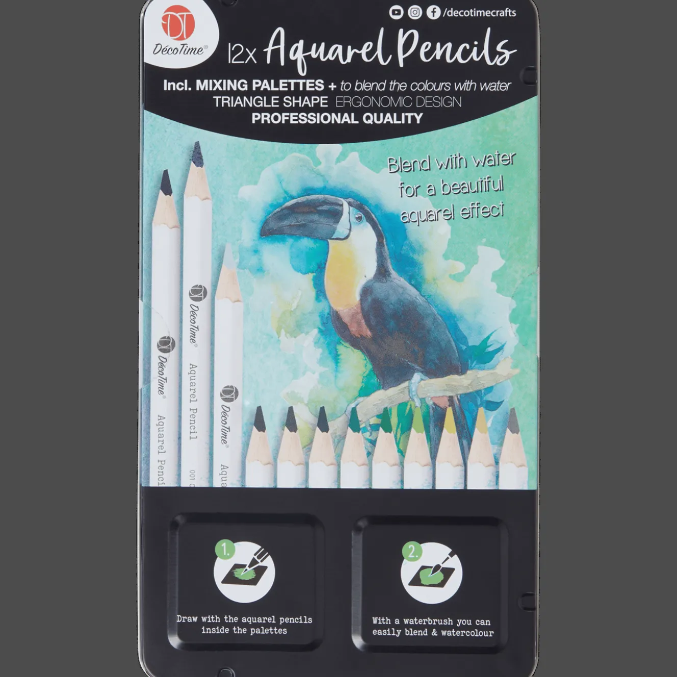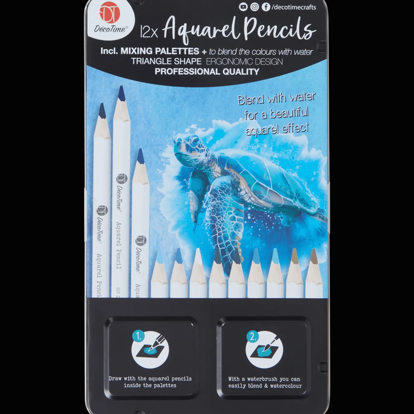 Met deze aquarelpotlodenset kun je tekenen zoals met gewone kleurpotloden, maar ze kunnen ook worden geactiveerd met water om een waterverf-effect te creƫren.