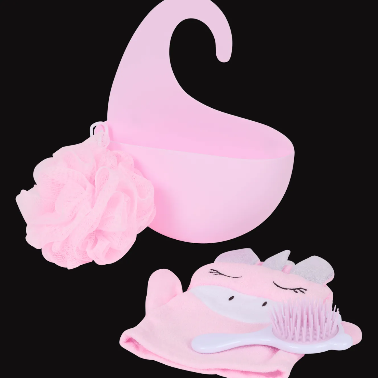 Maak van badtijd een feestje met deze vrolijke badset! Verkrijgbaar in leuke thema’s zoals een stoere haai of magische eenhoorn. Met een handige opberghaak, zachte badhandschoen, spons en haarborstel is deze set perfect voor een sprankelend schoon avontuur in bad.