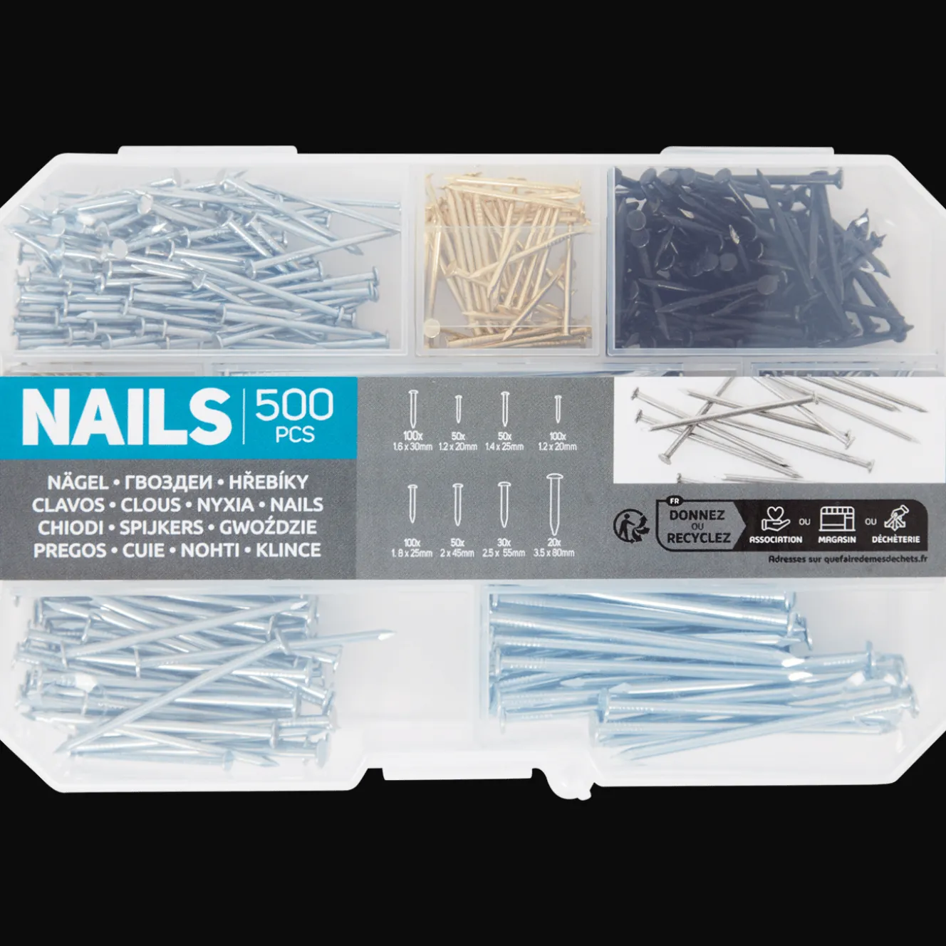 Een ruim assortiment spijkers voor al het timmerwerk. Geschikt voor diverse materialen.