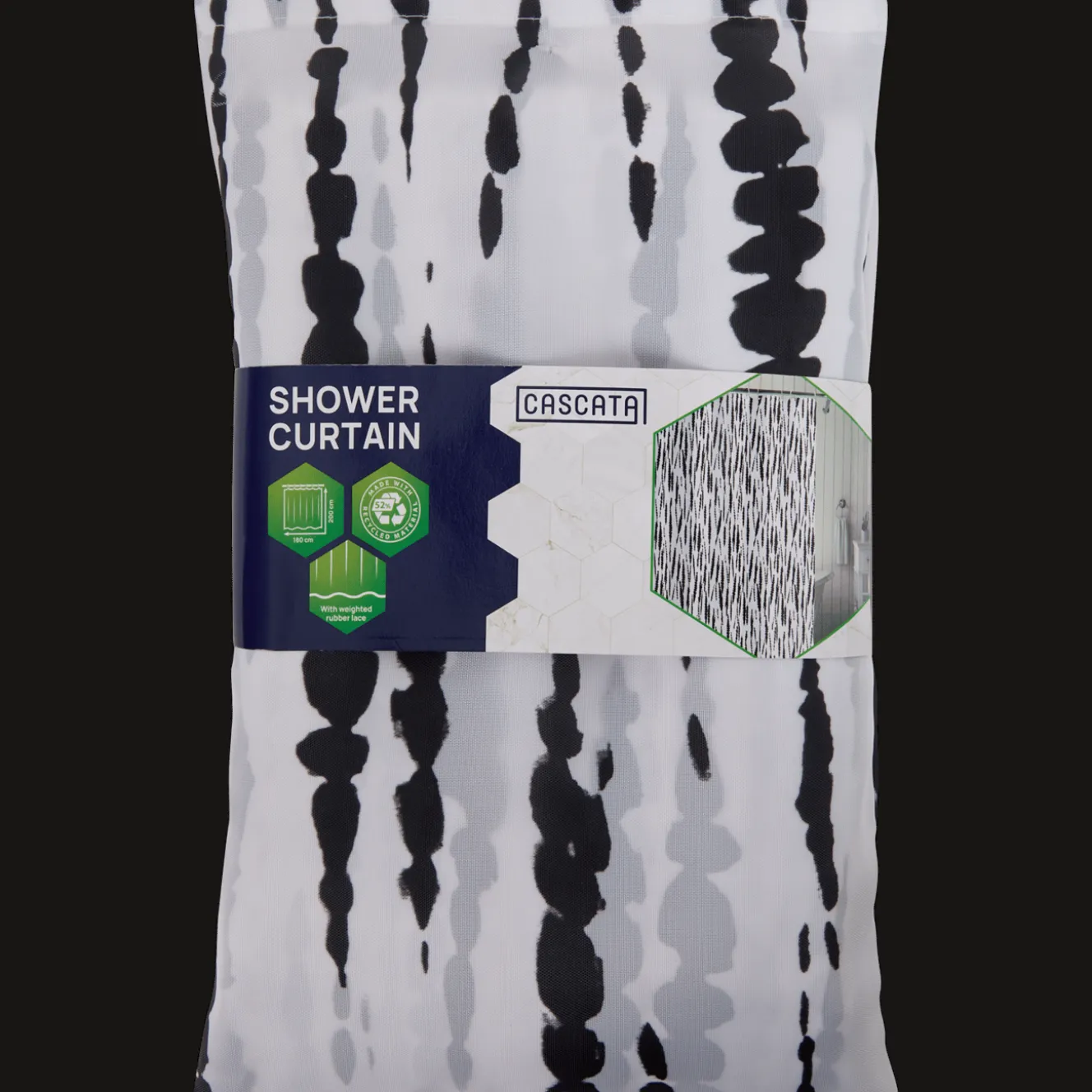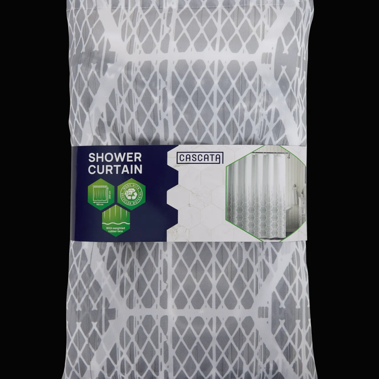 Dit stijlvolle douchegordijn houdt je badkamer droog tijdens het douchen.