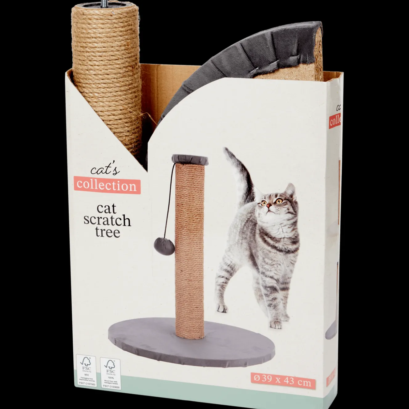 Een ideale krabpaal voor het scherpen van de nagels van je kat. De pluche bal stimuleert het speelplezier.