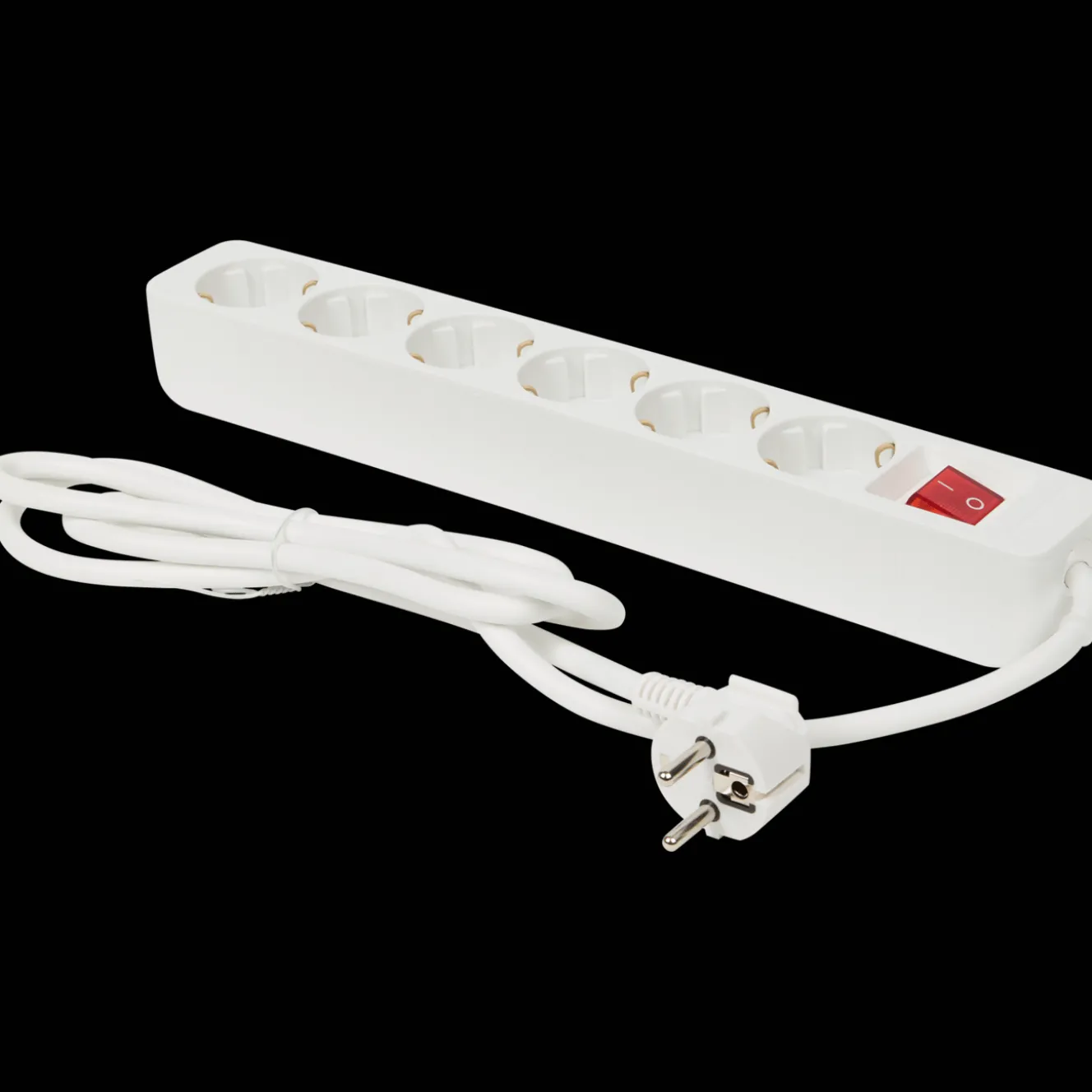 Sluit maximaal 6 apparaten tegelijk op deze stekkerdoos aan en zet ze aan en uit met behulp van de schakelaar. Hij is alleen binnenshuis te gebruiken.