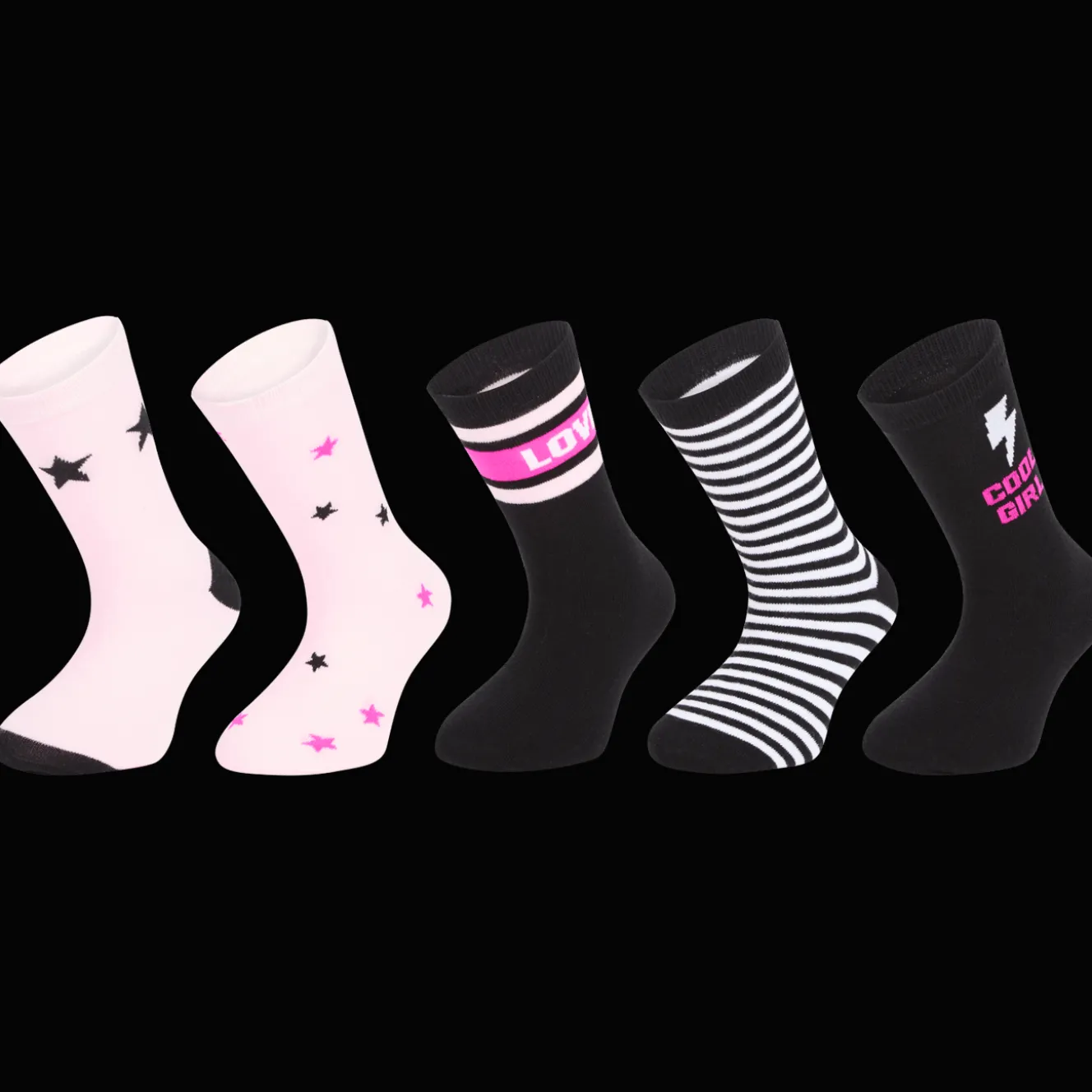 Met deze set kleurrijke sokken kun je lekker vaak wisselen van print.