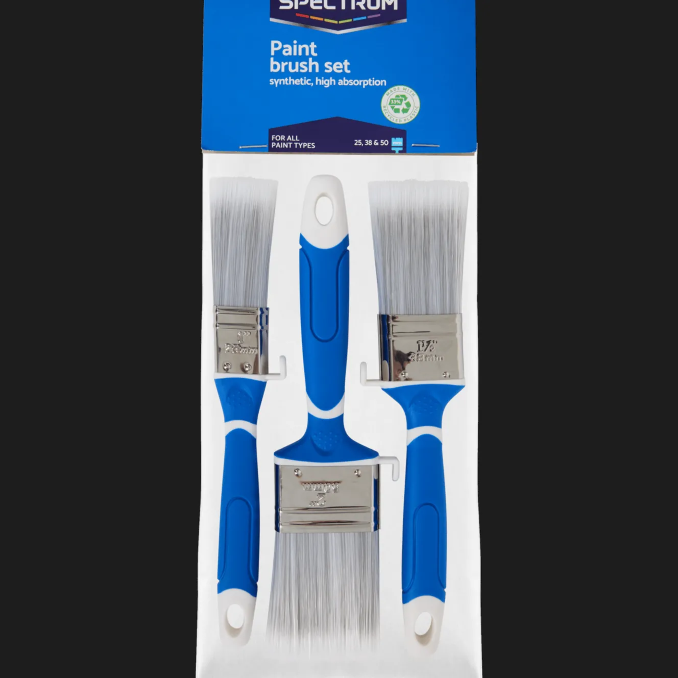 Schilder soepel en nauwkeurig met deze platte Spectrum-kwasten voorzien van een soft-tip. Die zorgt voor optimale verfopname en afgifte, voor een streeploos resultaat. De set bestaat uit 3 kwasten: 25, 38 en 50 mm dik.
