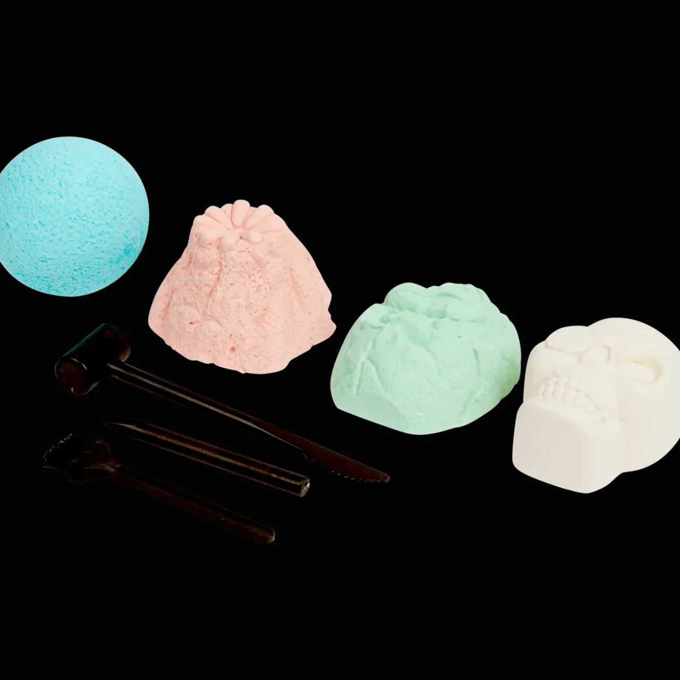 Graaf de allergrootste schatten op met deze spannende opgraafset. Kies het juiste gereedschap uit, ga op graafavontuur en ontdek alle vier de verborgen schatten.