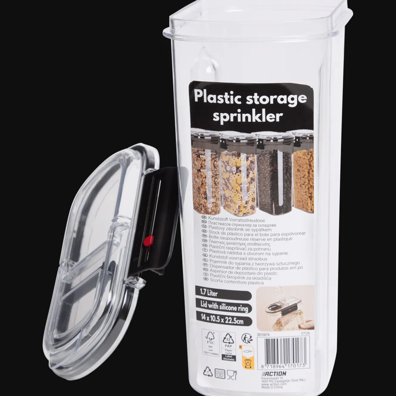 Met de handige strooidop van deze voorraadbus kun je gemakkelijk en gelijkmatig doseren zonder te knoeien.